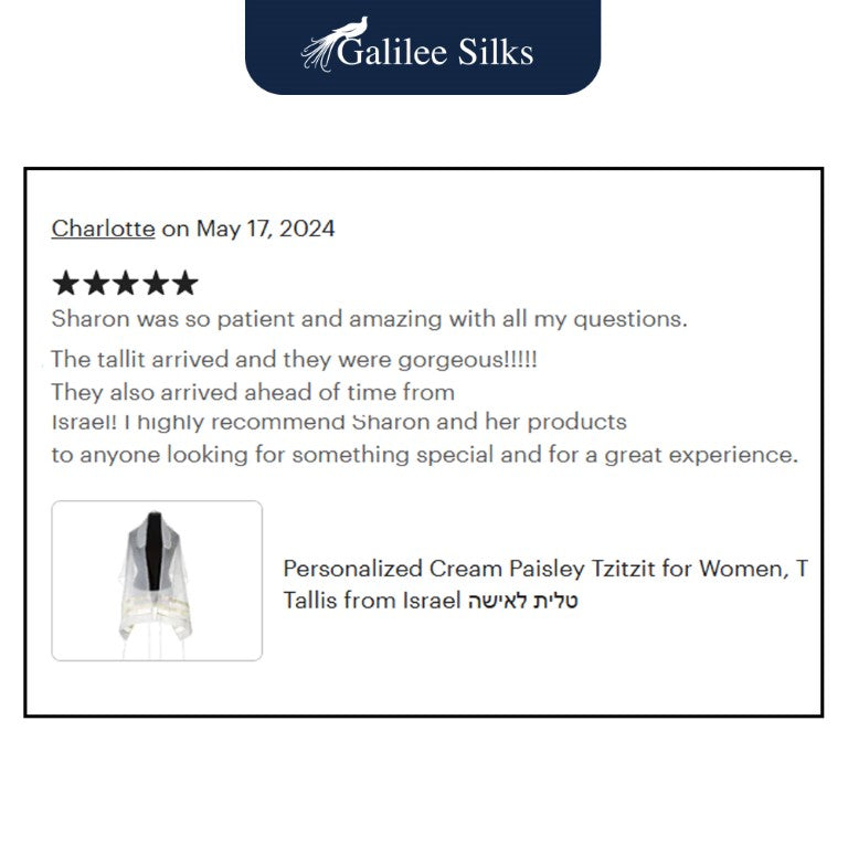 Our Jewish prayer shawls are designed and handcrafted in Israel with a variety of colors and models, carefully crafted by Galilee Silks from the finest materials.